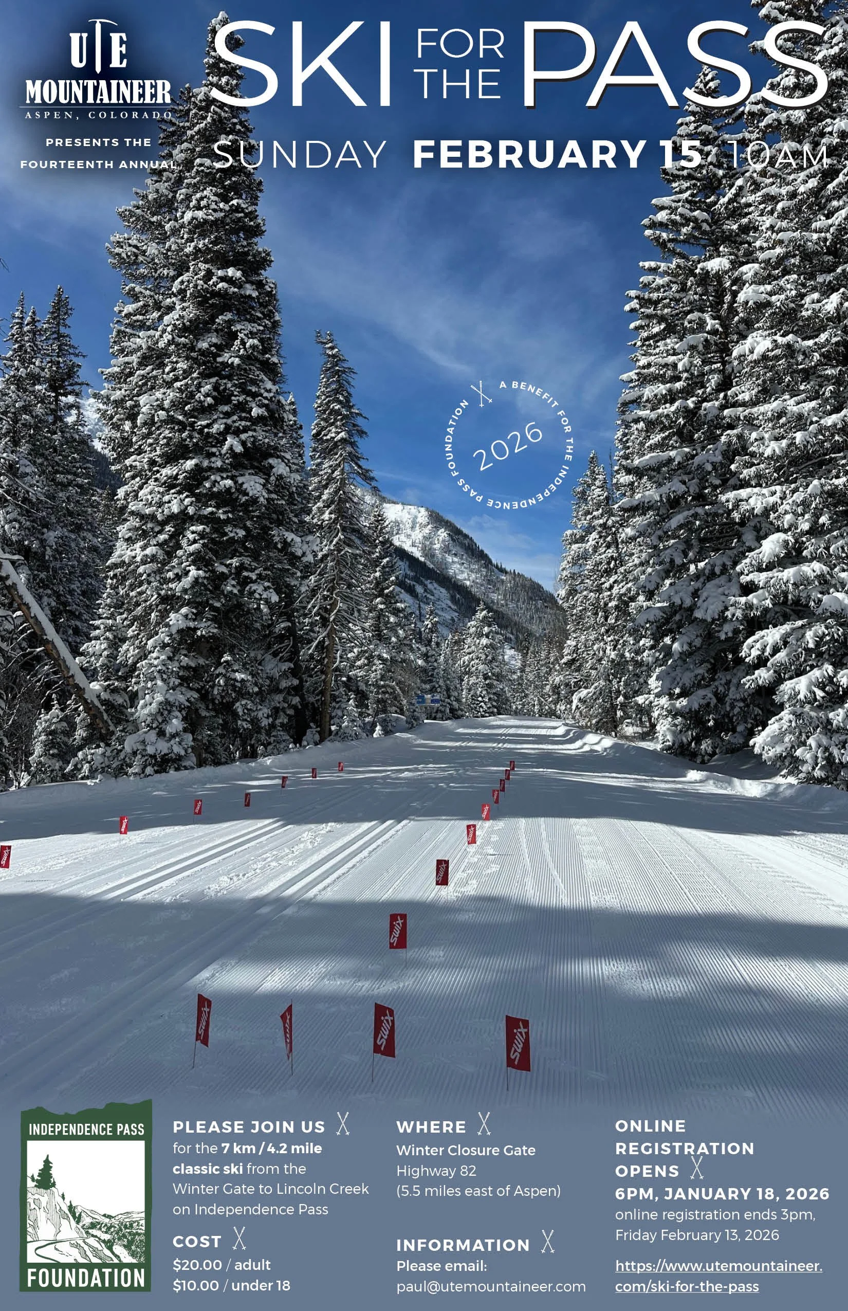 Registration for the 14th annual Ski for the Pass, taking place Sunday, February 15, at 10am, is OPEN.